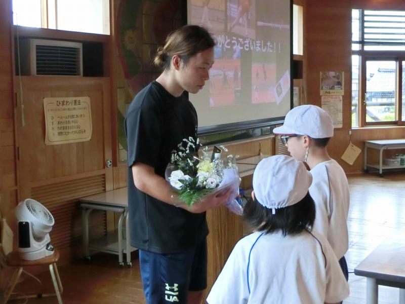 9月9日(火)に,アスリート派遣事業として,パラスポーツ選手の山岸英樹さんが来校されました。やり投げや野球の選手でもある石川県出身の選手です。今日は,ボールの投げ方を教えてもらいました。