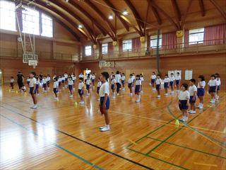 今日は,雨が降った時バージョンの開会式や全校競技の練習をしました。