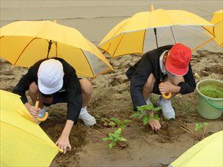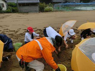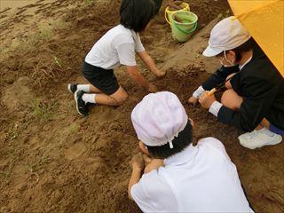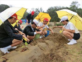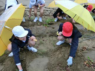 10月14日(火)は,あいにくの天気でしたが,傘をさしてさつま芋ほりをしました。