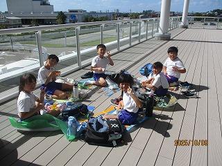 低学年は,「かほっくる」で思いっきり体を動かし,石川県庁の19階展望ロビーで景色を眺め,金沢クルーズターミナルでお弁当をいただき,大野からくり記念館でからくり人形を見せてもらいました。