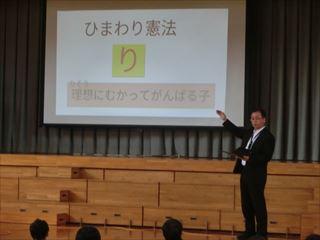 全校集会では,校長先生から「ひまわり憲法」についてのお話がありました。将棋の藤井聡太さんの強くなった秘訣を紹介され,粟ノ保っ子も「目標をもって頑張ってほしい」とお話されました。