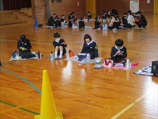 「1年生を迎える会」では,自己紹介を一人一人行い,決めポーズもそれぞれ披露してくれました。その後,○×ゲームや校内ウォークラリーなど,全校のみんなでゲームを楽しみました。最後に,ひまわり班の4色に分かれて,みんなでお弁当をおいしくいただきました。