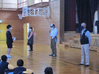 高田昌信さん,堀龍夫さん,保志場晶子さんに来ていただき,粟ノ保見守り隊の紹介式をしました。毎朝,立ってくださっている酒井一人さんをはじめ,粟ノ保見守り隊の方々は全部で9名います。今後とも子どもたちの安心安全のために見守り活動をよろしくお願いします。