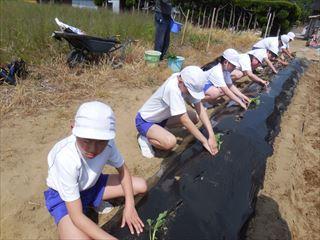 5月18日(木) 4・6年生 さつまいもの苗植え