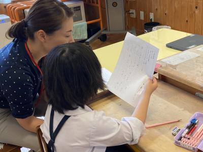 いなほ学級では,書いた作文を読み返して,おかしなところはないか確認していました。書くことは今年も力を入れて指導します。