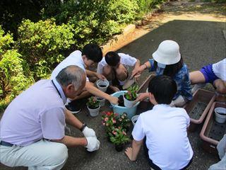 地域の民生委員・児童委員の方に来校していただき,独り暮らしの老人宅へ花鉢をプレゼントする趣旨について説明していただきました。子どもたちは,約1か月間,ベゴニアの花をお世話し,夏休みにプレゼントします。