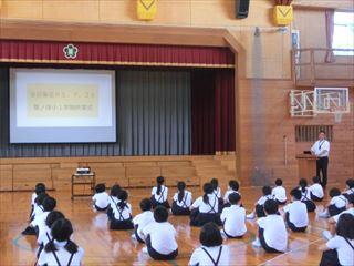 終業式では,校長先生から陸上の「10秒の壁」についてのお話があり,粟ノ保っ子もあきらめず努力してほしいと話されました。その後,地区別に分かれて,自分達の地区の危険なところについて話し合いました。明日から,長い夏休みに入りますが,交通ルール等を守り,安全に元気に過ごしてほしいです。