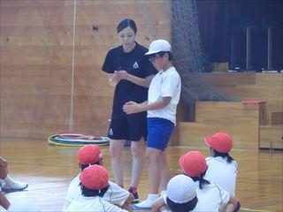 1~3年生は道徳の授業,4~6年生は体育の授業をしました。体育の授業では,スポーツ庁のアスリート派遣事業で,リオ五輪日本代表(バレーボール)の佐藤あり紗さんから,バレーボールを教わりました。五輪選手から楽しくバレーを教わり,貴重な体験をすることができました。