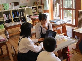 この日は,4年生と1年生がふり返りトークをしているところを見つけました。