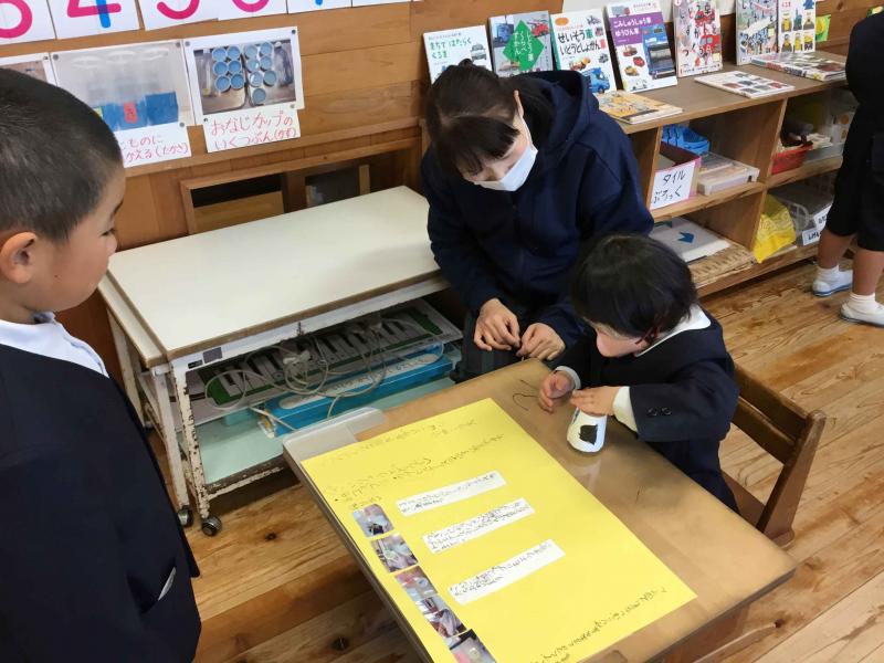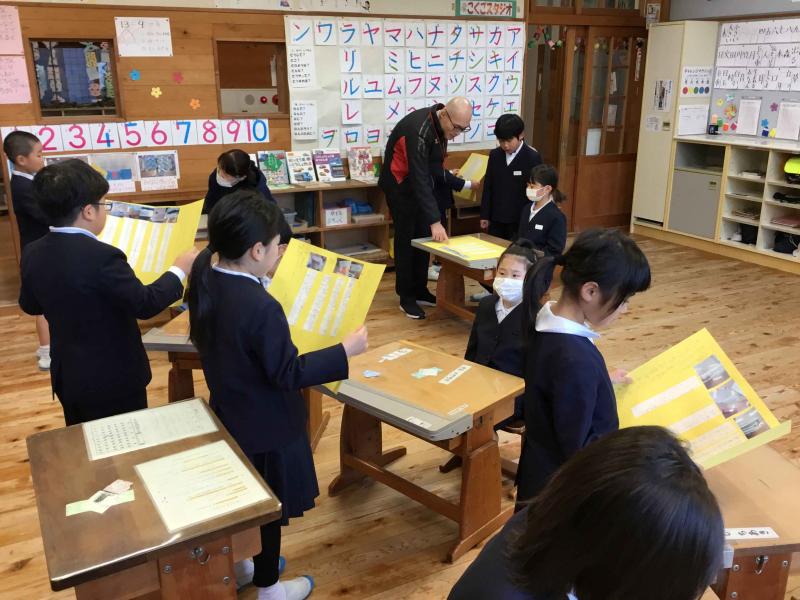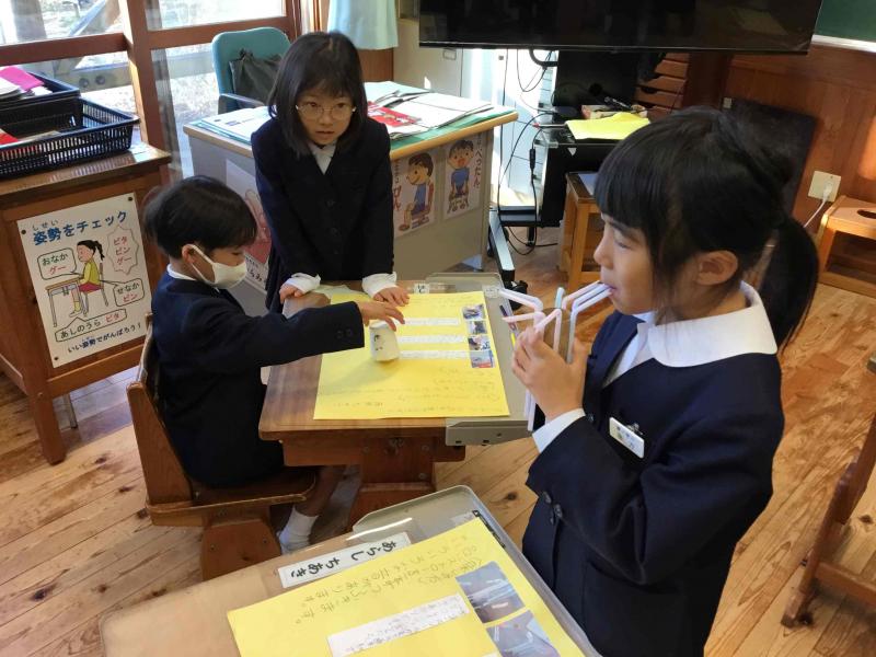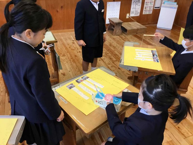 11月27日(木)に,2年生が国語の学習で作ったおもちゃを1年生に紹介しました。教科書の説明文通りに作った人もいれば,自分で調べたおもちゃで作った人もいました。1年生が喜んでくれて大満足の2年生でした。