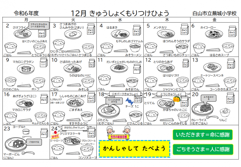 12月きゅうしょくもりつけひょう
