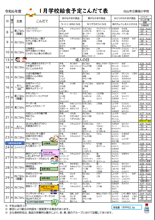 R7.1.31学校給食週間(白山市お誕生日こんだて)