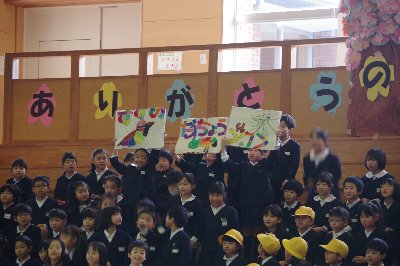 1年生から5年生は、縦割りグループのリーダーを務めてくれた6年生に、