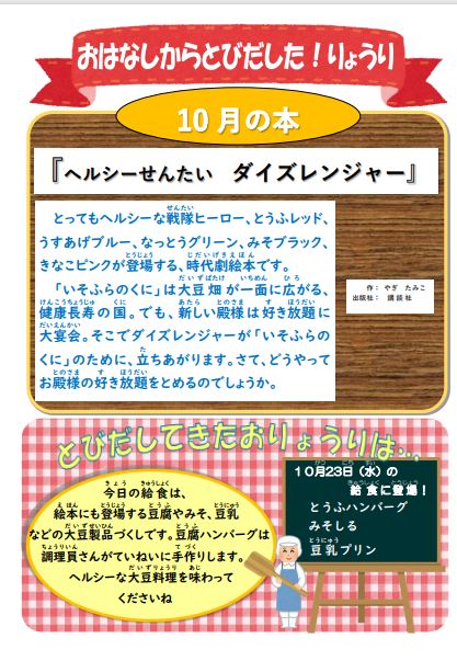 R6.10.23おはなし給食「ヘルシーせんたい だいずレンジャー」