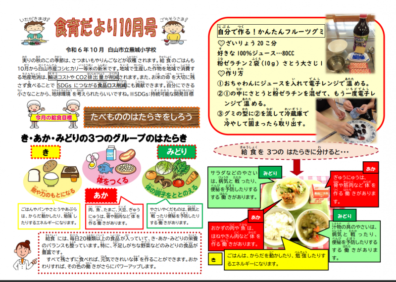 トップページ概要 校長だより お便り 食育のページ ☆おすすめレシピ☆ 蕪城小給食室より食育ページ活動の様子学校から CS・PTA