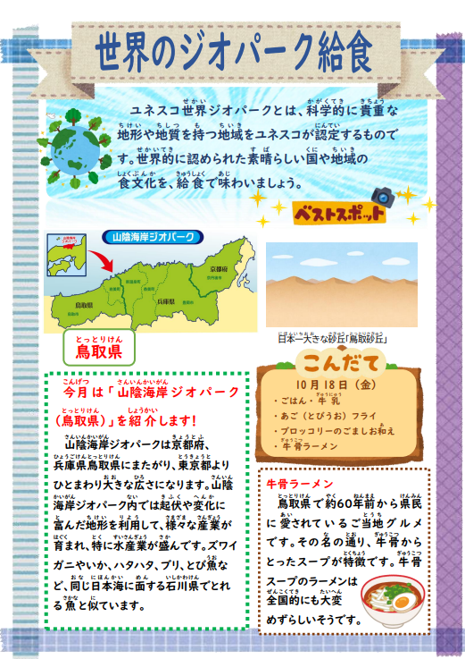 R6.10.18世界のジオパーク給食(鳥取県・山陰海岸)