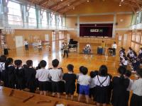 11月7日(火)に、3年生で感性のびのび体験「バイオリン & チェロコンサート」がありました。大久保秋子先生のバイオリンと大久保譲先生の チェロ演奏で、「愛のあいさつ」「ゴセックのガボット」「白鳥」「ホール・ニュー・ワールド ~映画「アラジン」 より」「美女と野獣」「トトロメドレー」を聴きました。その後、子供たちが音楽で練習してきたリコーダー「レッツゴーソーレー」 「ブラックホール」を演奏にあわせて吹きました。最後は、全員で「ふじ山」を合唱しました。3年生にとって、とても嬉しい1日になりました。