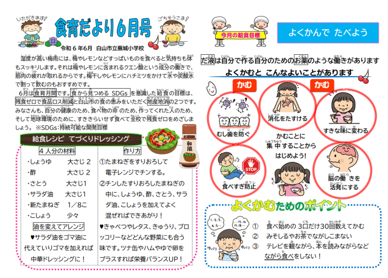 トップページ概要 校長だより お便り 食育のページ ☆おすすめレシピ☆ 蕪城小給食室より食育ページ活動の様子学校から CS・PTA