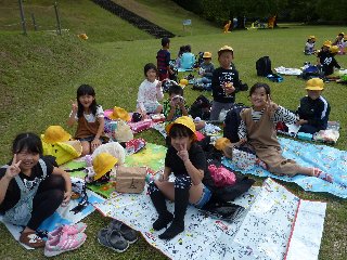 芝生が気持ちいいピクニック広場でのおいしいお弁当,