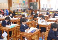 1月9日(火)から3学期が始まりました。初日に、全校で書初めをしました。低学年は硬筆、3年生以上は毛筆で挑戦しました。どの学年も心新たに集中して取り組む様子が見られました。