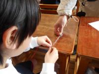 1月19日(金)に、PTA主催の3年伝統工芸教室がありました。水引のしおりに挑戦しました。PTAの学級委員さんと一緒に、一人一人が好きな色を選んで、三つ編みにしていきました。世界に一つだけのオリジナルしおりを仕上げることができました。