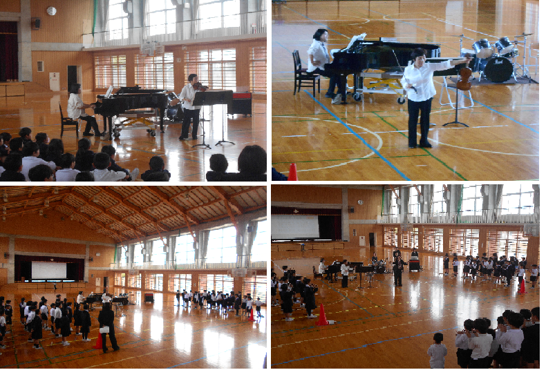 10月30日(水)に、3年生の感性のびのび体験学習「バイオリンコンサート」がありました。毎年来ていただいている大久保秋子さんを今年もお呼びして、「勇者は帰る」「ホール・ニュー・ワールド」等のバイオリン演奏を聴きました。子どもたちも音楽の時間で学んだ「ふじ山」や「白山市民の歌」をバイオリンとピアノに合わせて歌唱したり、「レッツゴーソーレー」をリコーダー演奏したりして、大久保さんとのコラボレーションも楽しみました。