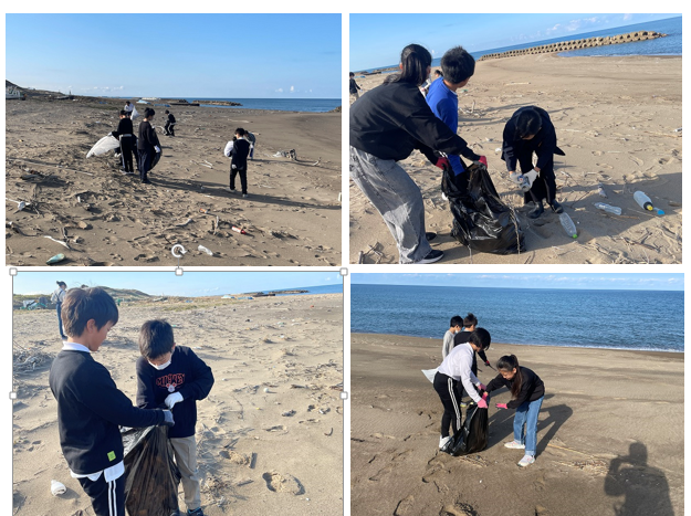 5年生は、国語科や総合的な学習の時間を中心に、環境問題について学んでいます。学習が進む中で自分たちの周りの環境について考え、自分たちができることとして、11月11日(月)に竹松海岸へ行き、海岸清掃を行いました。短い時間でしたが、たくさんのゴミを拾うことができ、かなりきれいになりました。