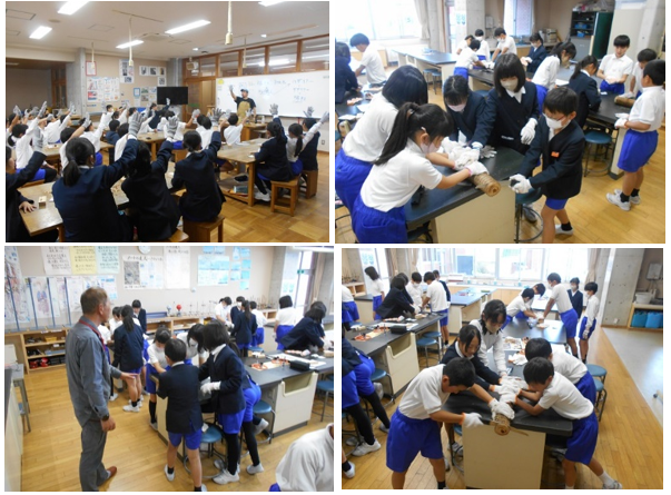 11月19日(水)、5年生の総合的な学習の時間に「白山ジオ学習」の一環で、「木育講座」がありました。林業に携わる方や木工職人の方から、白山ろくの森林や林業、木材の魅力等のお話を聞きました。丸太切りや小物作り等の体験活動も行い、白山市の森林や林業、木材等に対する理解を深めました。