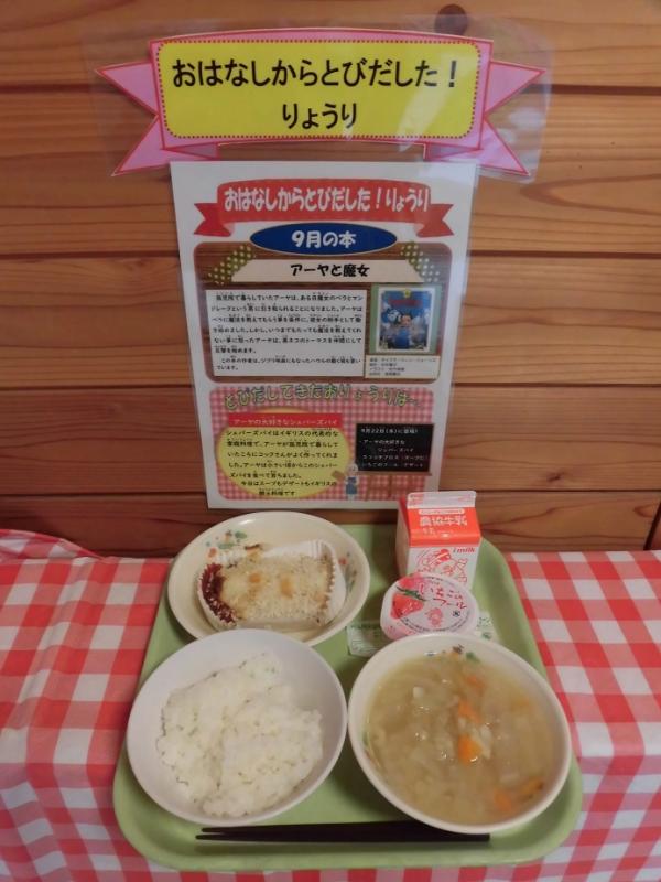 10月お話し給食「ゆでたまごひめとみーとぼーる」」