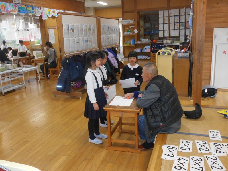 11月27日(木)からは、12:45~13:15にのべ9名のボランティアの方々の協力を得て、九九の修得に向けた取組が行われています。ボランティアの方々には、子どもたちが声に出して九九を唱えるのを聞いていただき、正しく言えたかどうかを確認していただいています。九九の完全マスターに向け、子どもたちは日々頑張っています。なお、この取組は12月18日(木)まで行われる予定です。