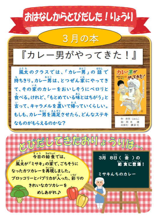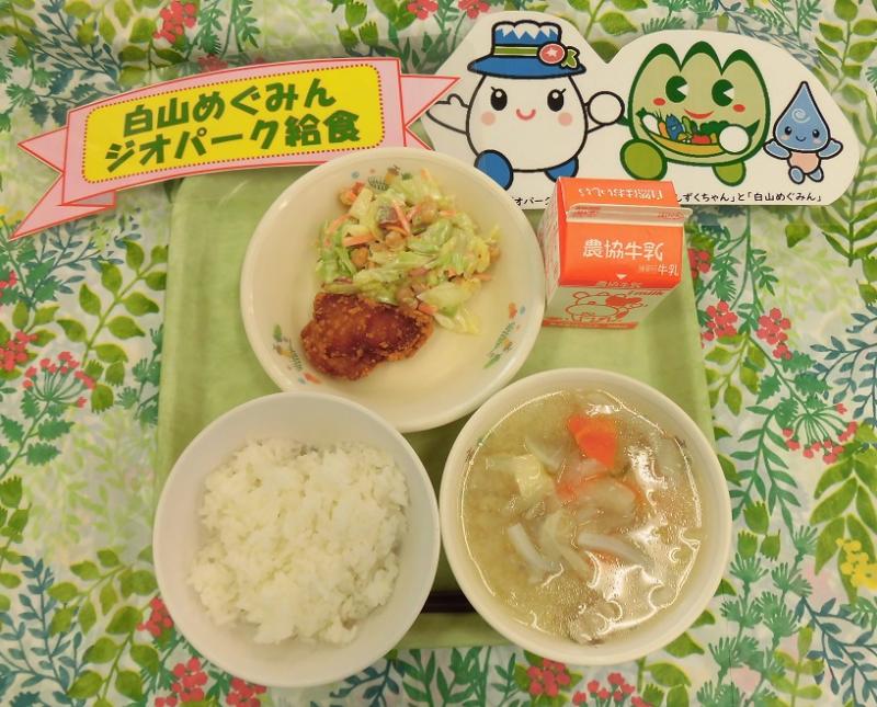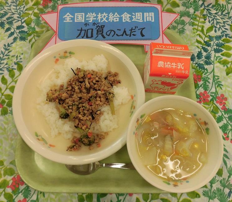 白山市産のブロッコリー(そぼろっコリー丼)や地元の農家さんが作ってくれた玉ねぎ・大根(さつま汁)や1.2年生が作ったさつまいも(さつま汁)を使いました。