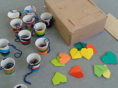 今日は、1年生が生活科での学習「おもちゃランド」に清心こども園の年長組さんを招待しました。
