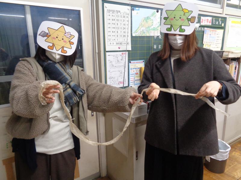 1年生が、保育園の子どもたちを招いて楽しんでもらうために作った道具を、全校のみんなにも使ってもらおうとお店を開いてくれました。