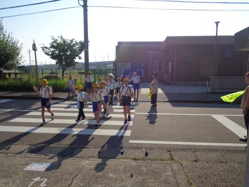 現在、秋の交通安全指導として、地域の方や安全指導委員会の委員の方に、通学路で子どもたちの見守りをしていただいています。