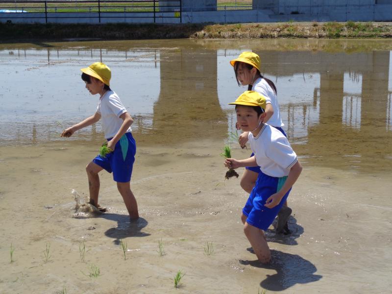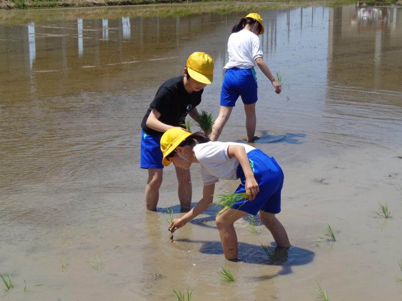 「キャー」という声も聞こえましたが、何だかみんな楽しそうでした。日本の主食であるお米の生産にほんの少しですがかかわることができ、生産者の方の工夫や苦労について学習することができたのではないでしょうか。