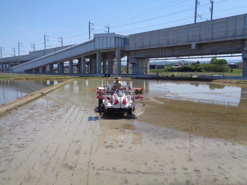藤井さんが田植機を上手に運転すると、みんな感心していました!
