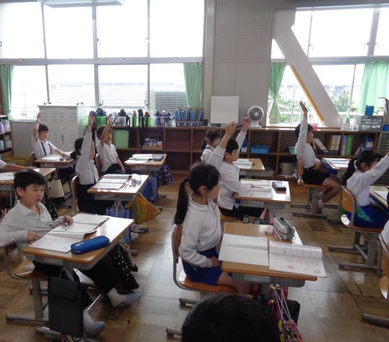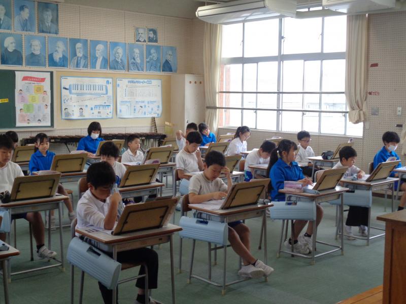 今日の朝は大雨で、玄関についた時、子どもたちは、制服が濡れていたり、かさが壊れていたりして大変そうでした。それでも、がんばって登校してくる子どもたちはやっぱりすごい!毎日歩いて通ってくるだけでも立派なものです。雨にも負けず登校した後は、一生懸命学習に取り組んでいました。