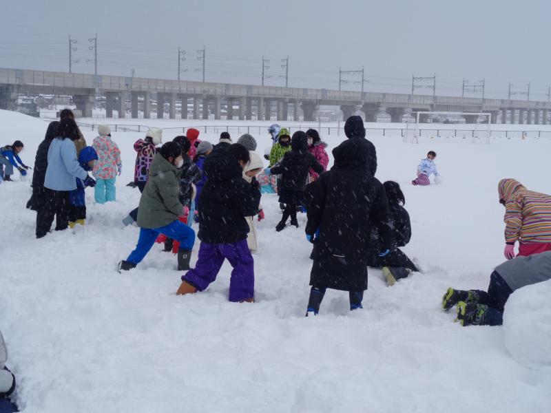 児童会種目では、低中高の3人組になってボールを運ぶ競技です。