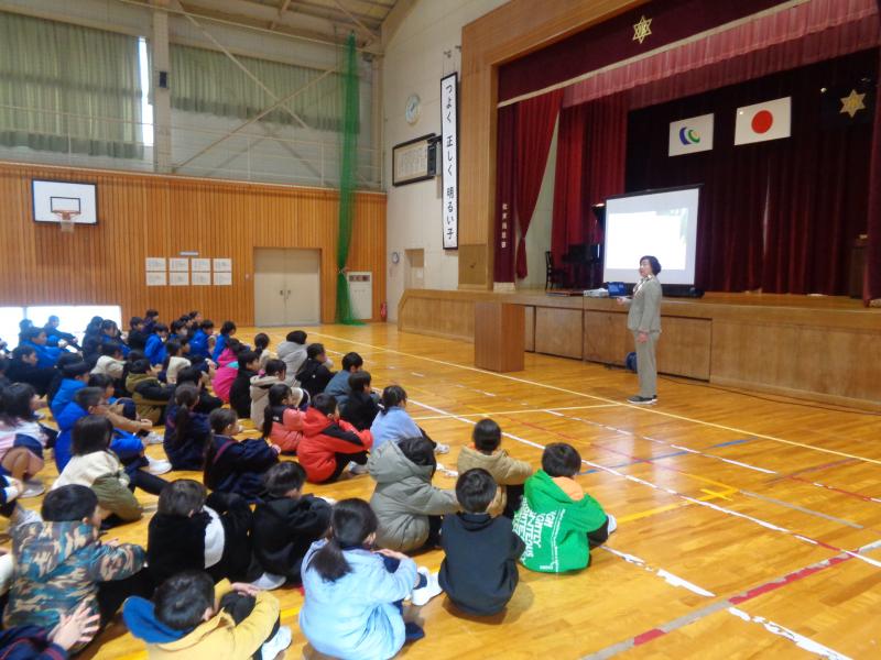 子ども園では、お兄さんお姉さんになった1年生の演技を一生懸命見てくれました。