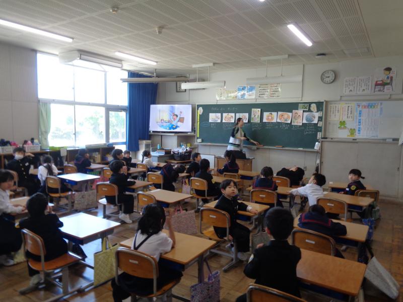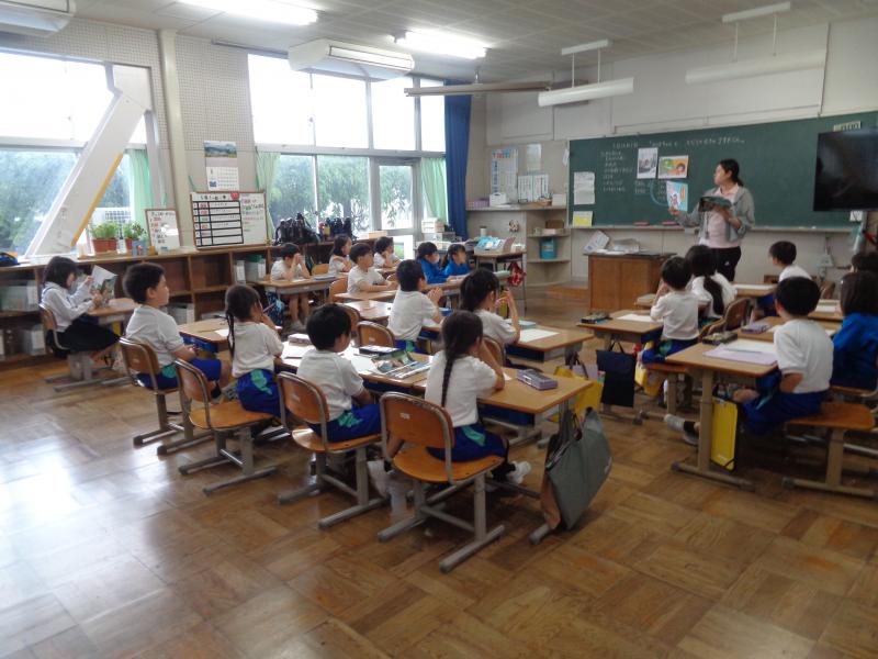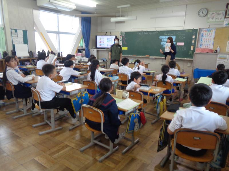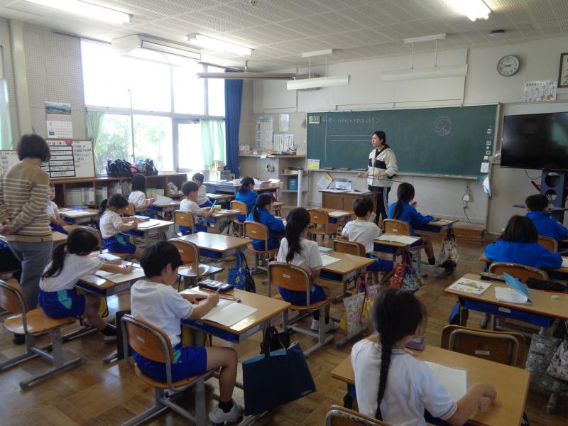 校長先生が「ゲストが来ています!」と話をすると、「大谷翔平?」と声があがる等、とても温かな雰囲気でした。ゲストは加賀市教育委員会の「島谷教育長」でした。