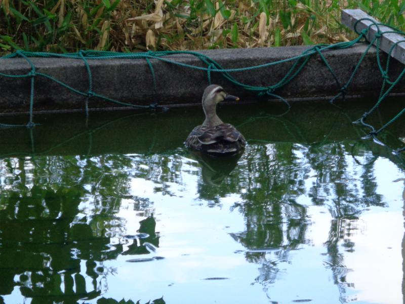 今日、朝から中庭の池にカモが1羽遊びにきました。池の魚が食べられないかちょっとハラハラしましたが、どうも水浴びだけだったようです。