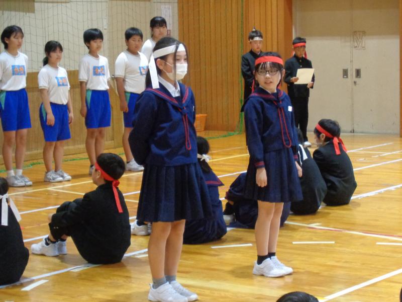 退場時、6年生は、腰を落として練習しながら退場しました。それを見た下学年も真似をして退場!先輩の良いところは引き継ぐ、分校小学校の良いところですね!