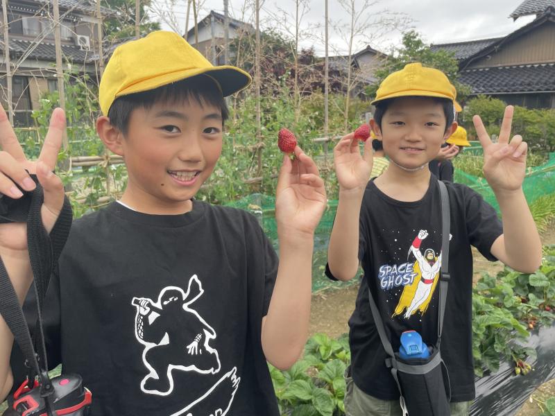 また、1・3・5年生は、地域の裏谷さんのご厚意により、いちご狩りの体験をしてきました。おいしいいちごをたくさん食べてとても満足した様子でした。地域の方の思い等、これから学習にもつなげていけるといいですね。2・4・6年生も24日に体験をさせていただく予定となっております。裏谷さん、ありがとうございます。