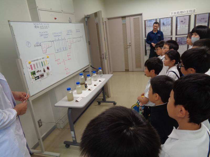 4年生が社会科の学習で「大聖寺川浄化センター」に行ってきました。先日は、山中浄水場に行き、川の上流における水の利用について学習しました。今回は下流で水をどのように扱うのかという点で学習してきました。上流と下流では水の扱いが異なることに気づいた4年生!さらに水の処理の仕方にも新たな発見があったようです!