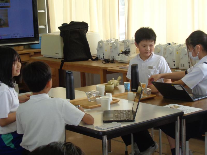 本日、日本茶インストラクターの方にお越しいただき、5年生がおいしいお茶の入れ方を学びました。お茶が有名な地域の分校っ子としては、お茶の生産だけではなく、お茶を飲むところまでこだわりたいところ!温度や時間にまでこだわったお茶の入れ方を教えていただいて最高の一杯を味わい、お茶に対する関心がさらに高まった分校っ子でした!
