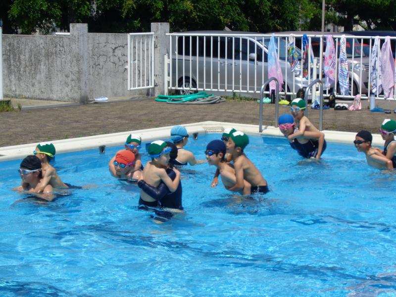3、4年生の授業では、もぐったり、けのびをしたりして、早速水泳の指導が行われていました。子どもたちは、プールに入れた楽しさとともに、水泳の上達に向けて一生懸命取り組んでいました。