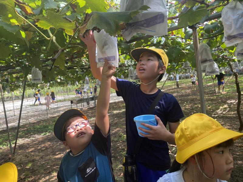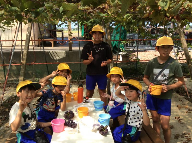 2学期は地域学習を全学年でより一層進めていく予定ですが、その一環として1、2、6年生は、ぶどうやさん西村にブドウ狩りに出かけました。また、2、6年生は、中山鬼瓦に製造過程の見学にも行きました。