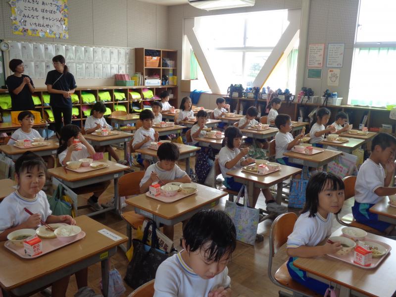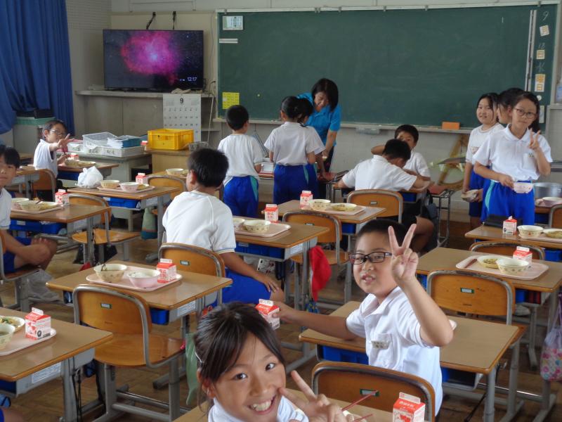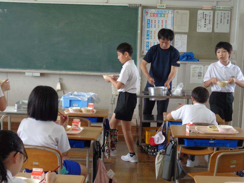 また、2学期初の給食ローテーションがあり、担任の先生とは別の先生と給食を食べるということで、子どもたちは楽しみにしていました。(さみしい人もいたかな・・・)もりもり食べて、練習もがんばってくださいね!