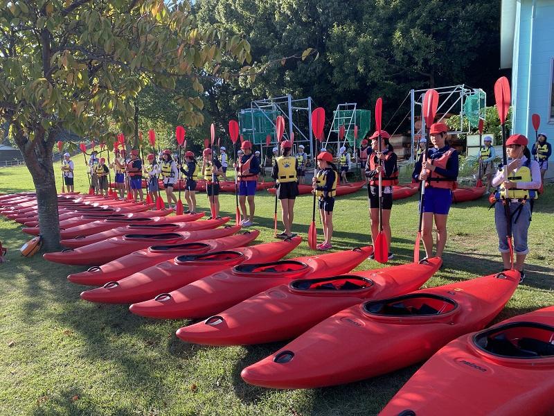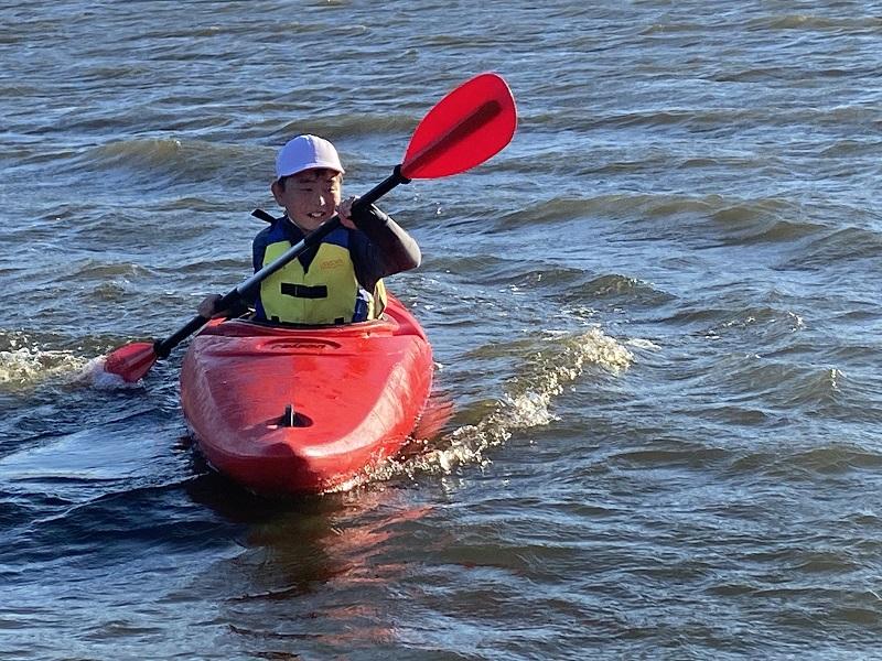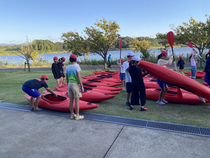みんなで協力してカヌーを運び乗り込みます。最初は「きゃー」という声も聞こえてきましたが、コツを掴んできたのかスイスイと進めるようになり、無事に全員が沈する(ひっくり返るのカヌー用語)ことなく終えることができました。頑張って漕いでいる友達を応援する声もたくさん聞こえて嬉しかったです。