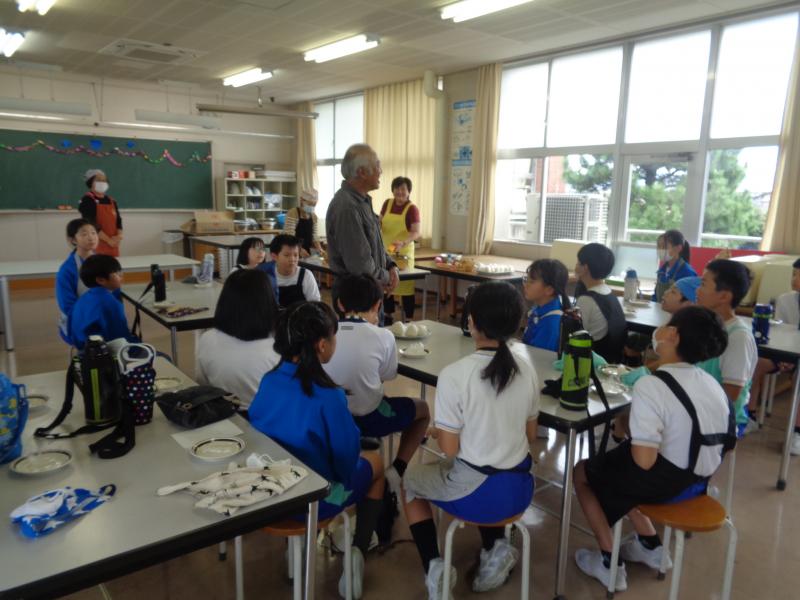 また、5年生は収穫したお米でおにぎりを作り、学校田でお世話になった藤井さんを招いて食べました。新米のお米の甘さと、鍋でつくったごはんのおいしさに、5年生も感動していました。藤井さん、ありがとうございました。